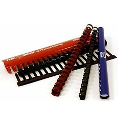 Plastic comb binding makes it very easy to bind a book and comes in a 19 ring plastic spine. If you are trying to save some money on your project and want a good look then plastic combs are a great choice for your binding needs. The best thing about comb binding is that if your ever need anything printed on the side of the plastic comb (for example company name and logo) we can do it here at Binding Supply Company and we make sure your company sticks out form the rest. All of our plastic combs start at 1/4" and go up to 2". The most popular colors for plastic combs are Black, White and Navy. If for some reason you need a custom cut on plastic combs to change the length we can get that done for you just simply give us a call.